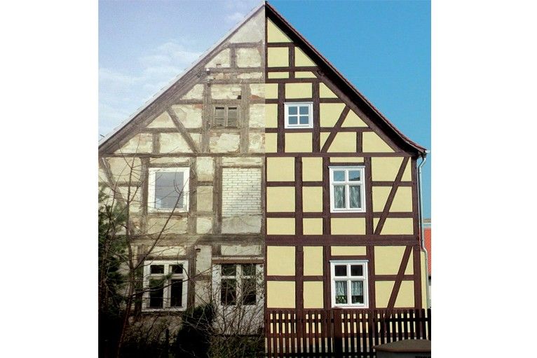 Im Rahmen des Modellvorhabens „Gebäudebestand (Energieeffizienz, Denkmalschutz)“ des Bundesinstitutes für Bau-, Stadt- und Raumforschung (BBSR) entwickelten wir ein Konzept zum Aus- und Umbau zwei aneinandergrenzender Ackerbürgerhäuser am Marktplatz im Denkmalbereich des historischen Stadtkerns von Uebigau-Wahrenbrück. Die leerstehenden und stark sanierungsbedürftigen Gebäude wurden zu teils barrierefreien Wohn- und Gewerbezwecken ausgebaut. Das kleine Quartier wird über eine gemeinsame Geothermie- und Solaranlage mit Heizwärme und Warmwasser versorgt. Die historischen Gebäudehüllen wurden in Abstimmung mit den Denkmalbehörden entsprechend behutsam energetisch ertüchtigt. Unmittelbar nach der Fertigstellung waren alle Wohneinheiten vermietet. Das Projekt wurde mit dem Brandenburgischen Energieeffizienzpreis 2021 ausgezeichnet.
